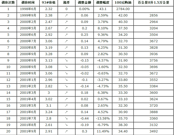 历年汽油价格表:由于原油期货价格相同,经营成本和利润率都相同。就是把燃油税和销售税()扣除后的汽油价格。